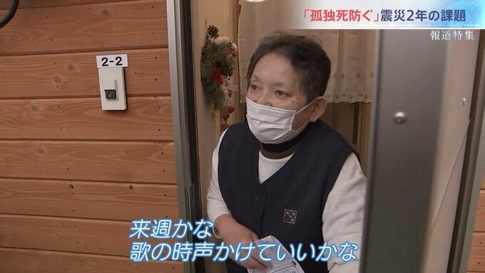 福光さんは地震で夫を亡くし、4畳半の仮設住宅に一人で暮らしている。