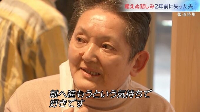 「やっぱりこれから、済んだことをいつまでも悔やんでいないで、自分自身気持ちを変えて、前へ進もうっていう気持ちで、好きです。主人も1日に亡くなっているので、元気にならなくてはと思って…」