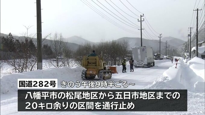 国道282号は14日午後9時半ごろから、八幡平市の松尾地区から五日市地区までの20キロ余りの区間が通行止めとなっています。