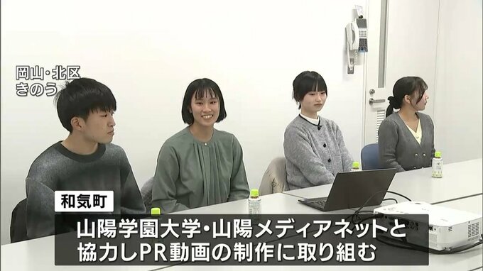 大学生が制作した岡山県和気町のPR動画の試写会が開かれ、学生たちが見どころや、コンセプトなどを発表しました。