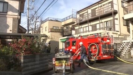 けさ、東京・調布市のアパートで火事があり、住人とみられる40代男性が病院に搬送されました。
