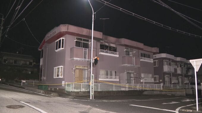 火は約2時間後に消し止められましたが、この火事で鉄骨2階建てのアパートの一室が全焼し、住人とみられる70代くらいの男性が、喉にやけどを負うなどの大けがをしました。