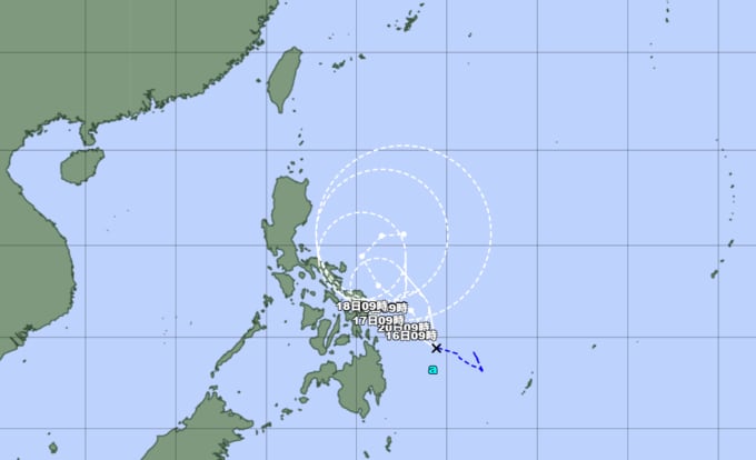 進行方向、速さ 西北西 15 km/h (7 kt)