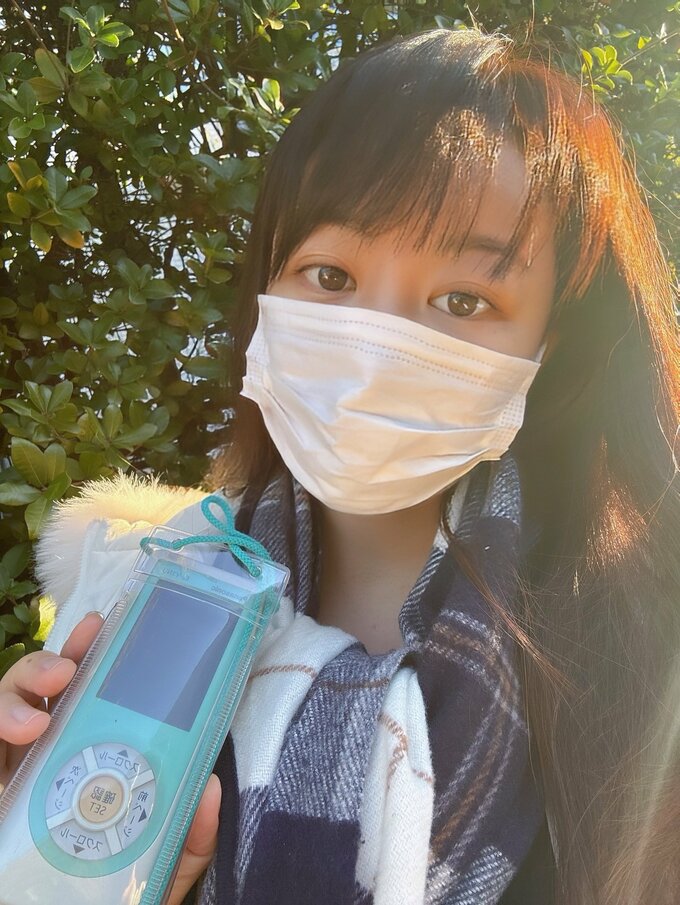 歩さんは3週間に一度の問診のため、手術を受けた病院を訪れたことを明かしています。投稿には、マスク姿で病院の呼び出し機能などが付いた受信機を手に持った屋外での写真が添えられていました。