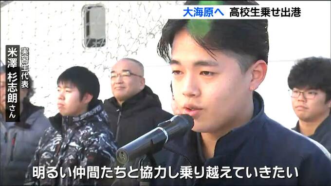 「宮城丸」で実習するのは宮城県石巻市と気仙沼市の水産高校の2年生ら23人です。石巻漁港で行われた出港式では、実習生の代表が決意を述べました。
