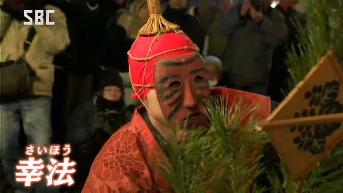 「幸法(さいほう)」と呼ばれる神様が境内に登場すると、五穀豊穣などを願い、舞を披露しました。