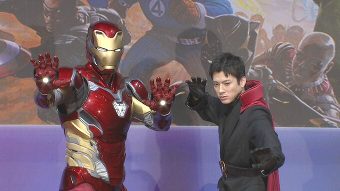 さらに山田さんが、マーベルの特大オリジナルアートお披露目用ボタンを押すと、会場が暗転。大ファンだというアイアンマンが登場すると、“サンキュー、アイアンマン...”と声を絞り出し、感無量の様子。