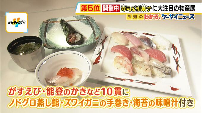 阪急うめだ本店で1月14日から「旨し、美し。金沢・加賀・能登展」が開催されています。石川県内の海産物、菓子、伝統工芸など、約60の名店が一堂に会しています。 地元の純米酢を使ったシャリで握る、豪華な…