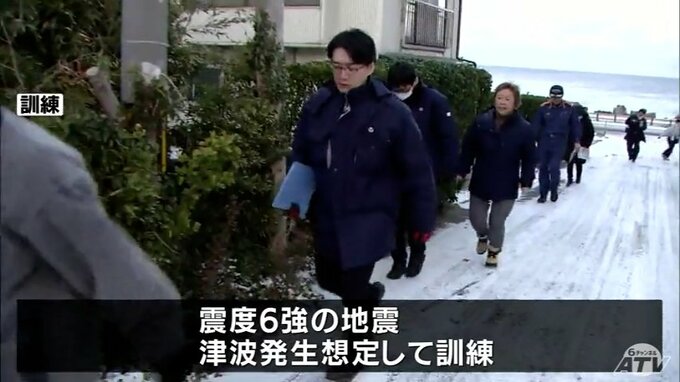 「寒さに耐えられるか」「もしかすると滑って転ぶことも想定」震度6強の地震で津波発生を想定して避難訓練 冬場の避難の難しさを実感