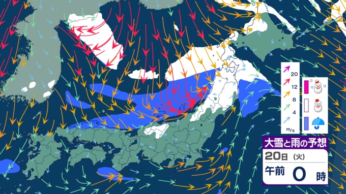 その後の21日~22日(木)にかけては強い寒気が南下。冬型の気圧配置がさらに強まるとみられ、北⽇本~⻄⽇本にかけての⽇本海側を中⼼に⼤雪となる可能性があるということです。