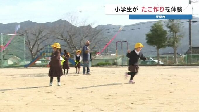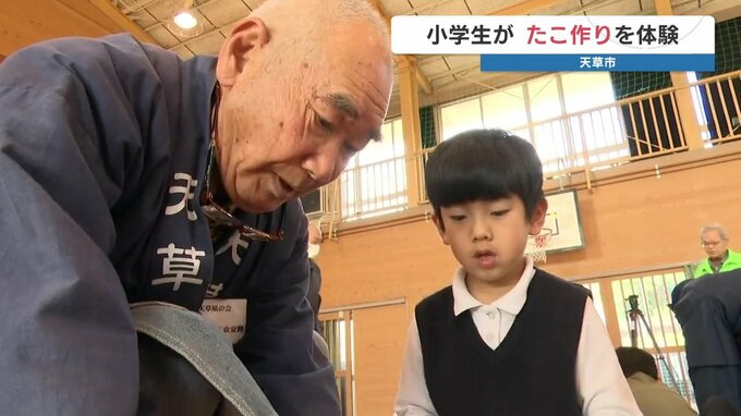地域ぐるみで子どもたちを育んでいこうと、熊本県天草市の小学生が地域の人たちと凧作りを体験しました。