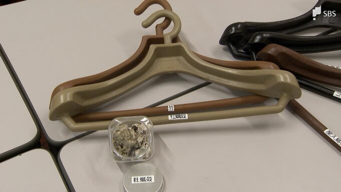 「浜名湖産の牡蛎殻(かきがら)をいただきまして、これを原料として牡蛎殻のハンガーを試作レベルですけど、今、チャレンジしています。思っていたよりも問題なくつくれた感じですね」