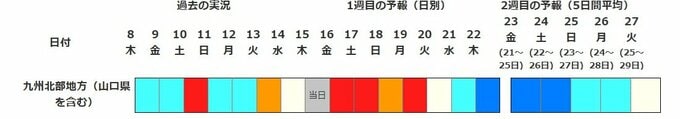 山口県を含む九州北部地方(低温に関する早期天候情報)