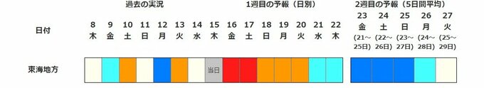 東海地方:1月21日頃からかなりの低温