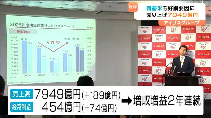 生活用品大手アイリスグループの2025年度の売り上げは、7900億円余りとなり、2年連続の増収増益となる見込みです。パックご飯や備蓄米の販売が業績を伸ばす要因になったということです。アイリスグループは1月15日…