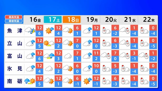【来週は寒波】全国の週間予報(16日(金)~22日(木))