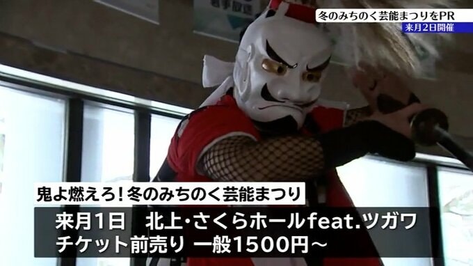 「鬼よ燃えろ!冬のみちのく芸能まつり」は、2月1日、北上市のさくらホールで行われます。