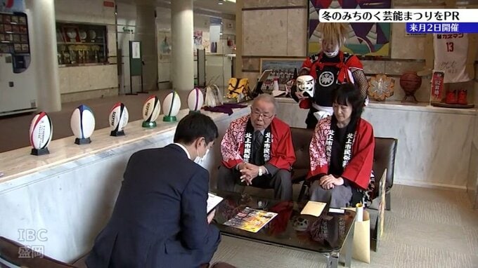 2月1日に北上市で行われる民俗芸能の舞台、「鬼よ燃えろ!冬のみちのく芸能まつり」のPRキャラバン隊がIBCを訪れました。