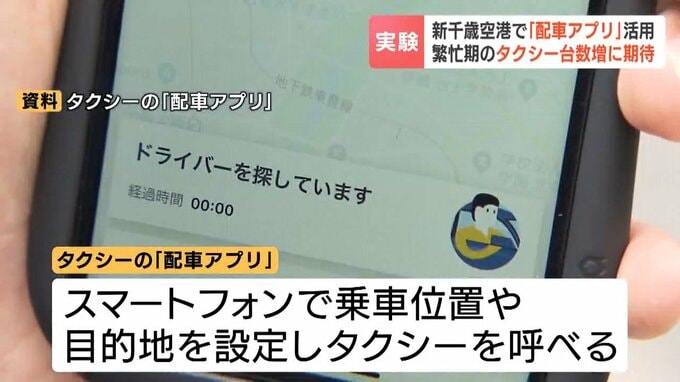 新千歳空港からのタクシー移動にスマートフォンの「アプリ」が使えるようになります。空港を運営する北海道エアポートは「配車アプリ乗り場」の実証実験を、15日から始めました。