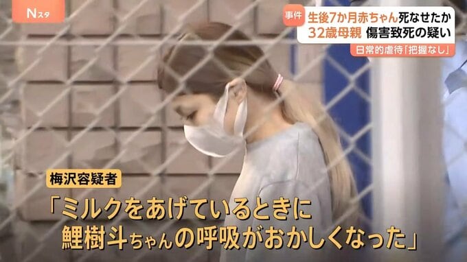 鯉樹斗ちゃんはおよそ1週間後に死亡し、死因は「外傷性脳障害」と判明。警察は、梅沢容疑者による暴行の疑いが強まったとして逮捕に踏み切りました。日常的な虐待については把握していないということです。