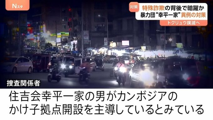 カンボジアの拠点から警察官を装いおよそ200億円をだまし取ったとみられる匿名流動型犯罪グループにも、幸平一家が関与していたとみられています。