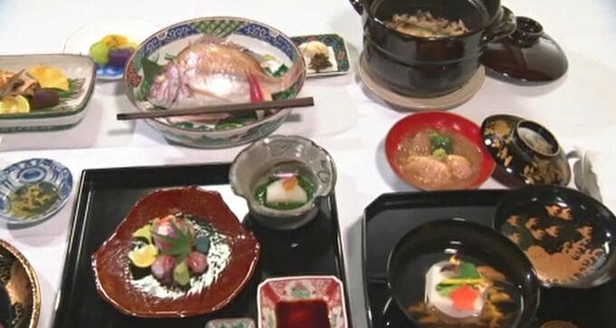 華やかな盛り付けにとどまらず、器やしつらいへのこだわり、もてなしにまで心を尽くす「総合芸術」として高く評価され、国の無形文化財に登録されました。