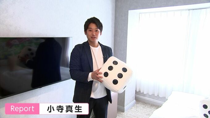 「こちらは、サイコロのクッションです。それでは振ってみます」