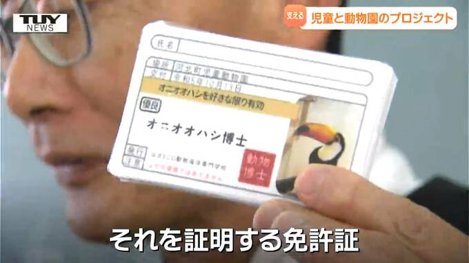 河北町児童動物園 学芸員 阿部敏計さん「皆さんはもうオニオオハシの博士です。それを証明する免許証!」