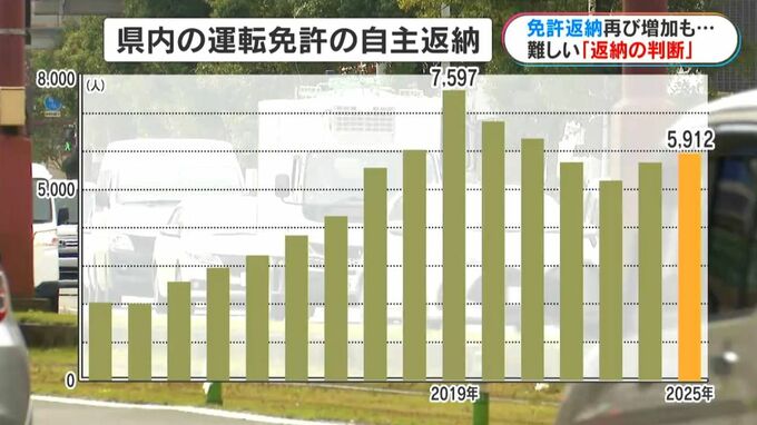鹿児島県内の運転免許の自主返納は、池袋での暴走事故で母親と3歳の娘が亡くなった2019年の7597人以降、減少傾向が続いたものの、今回の事故があったおととし、再び増加に転じ、去年は5912人でした。