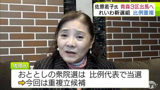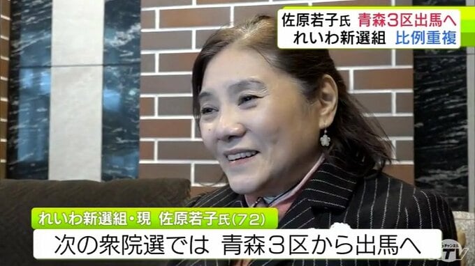 れいわ新選組の現職・佐原若子 氏(72)には14日、党本部から次の衆院選では「青森3区」から擁立すると連絡があったということです。