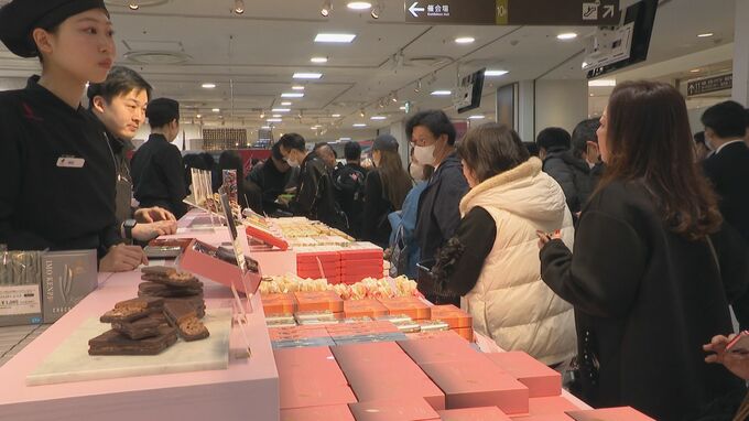 「午前10時を回りました。お目当てのチョコを目指して、お客さんが次々に入ってきています」