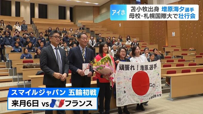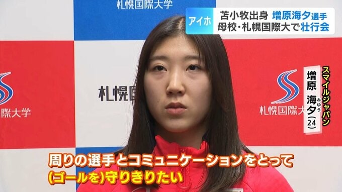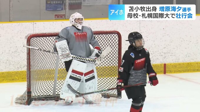 アイスホッケー女子日本代表として、ミラノコルティナオリンピックに出場する増原海夕選手(24)の壮行会が、母校の札幌国際大学で開かれました。