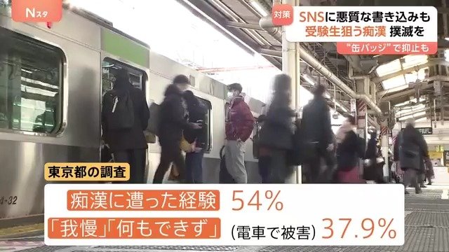 東京都の調査によると、16歳から69歳までの女性のうち、『痴漢に遭った経験』がある人は54%。電車内で痴漢された人のうち、『我慢した』『何もできなかった』と答えた人は37.9%に及びました。
