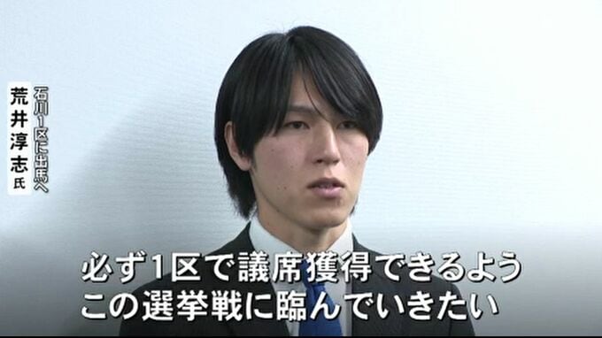 荒井淳志氏は「この石川1区で当選することだけを考えて活動してきたので、必ず1区で議席獲得できるようにこの選挙戦に臨んでいきたい」と力を込めました。