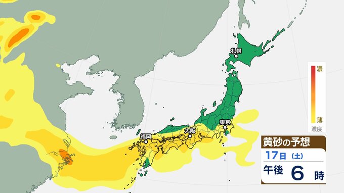 【黄砂情報】日本列島に季節外れの「黄砂」飛来 16日(金)~18日(日)にかけて九州・中国・四国・近畿・北陸・東海・関東甲信・東北の一部に影響か 屋外の洗濯物やアレルギー対策などに注意 黄砂シミュレーション【気象庁 16日午前9時更新】 2時間前