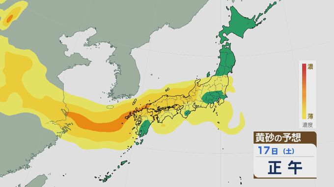【黄砂情報】大陸からの“季節外れの黄砂” ピークは16日(金)の日中に 17日(土)にかけて九州から東北南部にかけて飛来の見込み 最新の飛来予想シミュレーション 北陸放送 2026年1月16日(金) 09:16 国内 17日も、日中は九州から東海・北陸や関東のあたりまで黄砂が確認されそうです。