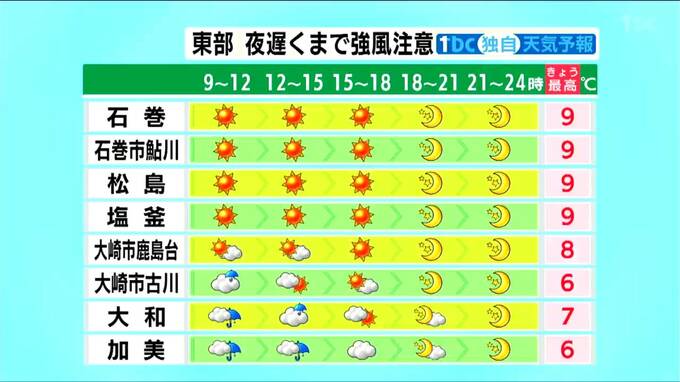 ■石巻:最高気温9℃ ■石巻市鮎川:最高気温9℃