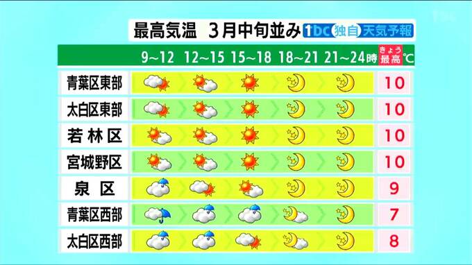 ■若林区:最高気温10℃ ■宮城野区:最高気温10℃
