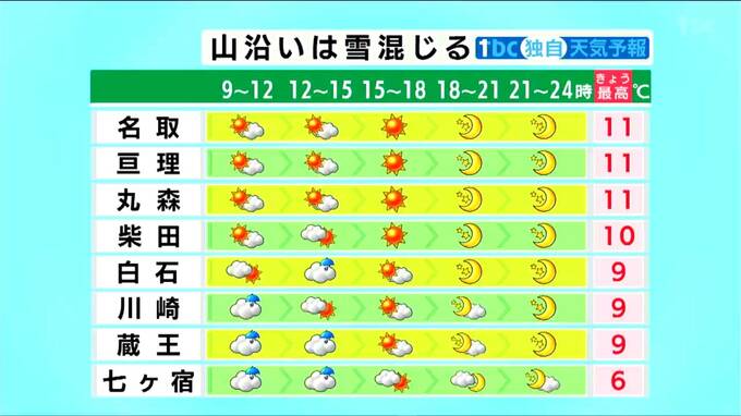 ■白石:最高気温9℃ ■川崎:最高気温9℃
