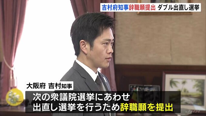 衆議院の解散に合わせて、大阪市長とともに出直し選挙に臨むため、大阪府の吉村知事が辞職願を提出しました。大阪府 吉村洋文 知事「辞職届を提出させていただきたいと思います。よろしくお願いします」大阪府の…