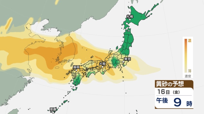 17日も広い範囲で黄砂予想 西日本の一部では18日も