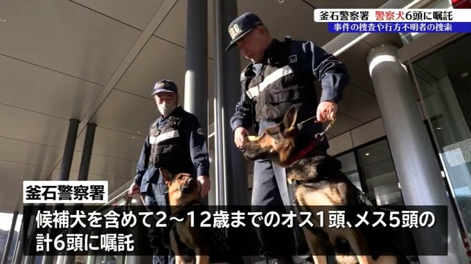 釜石警察署は今年、候補犬を含めて2歳から12歳までのオス1頭、メス5頭の合わせて6頭を嘱託しました。