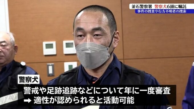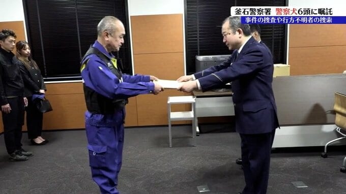 事件の捜査や行方不明者の捜索などにあたる嘱託警察犬として、岩手県の釜石警察署は合わせて6頭の飼い主に嘱託書を交付しました。