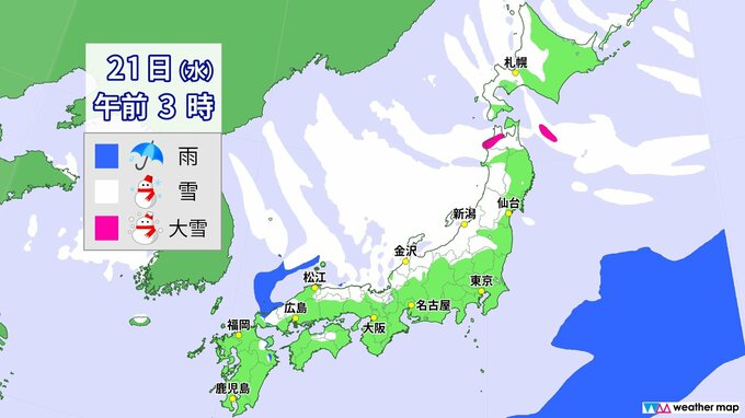 【画像】最新の雪シミュレーション 21日(水)正午~