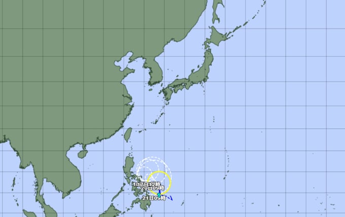 進行方向、速さ 北北西 15 km/h (8 kt)
