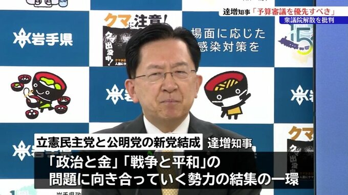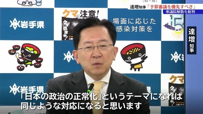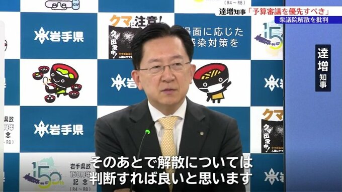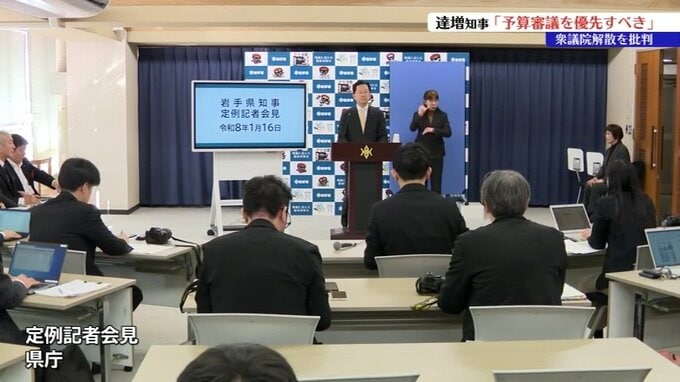 高市総理が通常国会の早い時期に衆議院の解散意向を示していることについて、達増拓也岩手県知事は「まずは予算審議を優先すべき」と解散に批判的な考えを述べました。