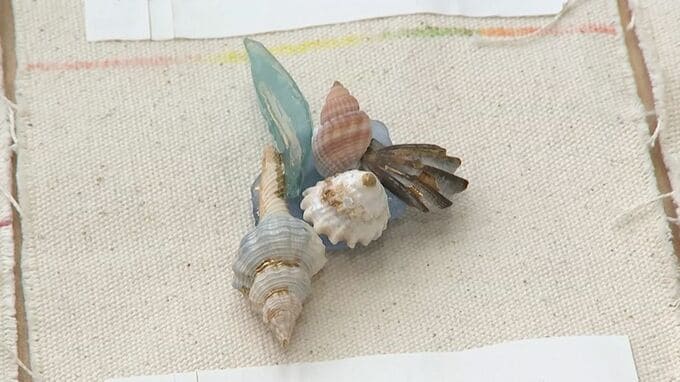 能登半島地震の被災地の中学生と、香川県の中学生が交流して作った美術作品の展示が高松市で開かれています。浜辺に流れ着いたガラス片や貝殻などで作ったブローチです。