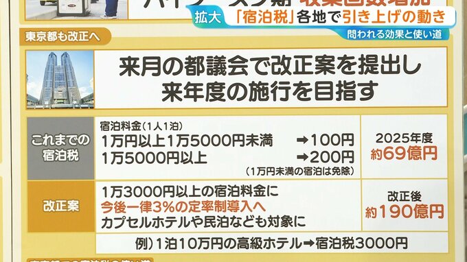 東京都も、2月の都議会で宿泊税の改正案を提出し、来年度の施行を目指しています。