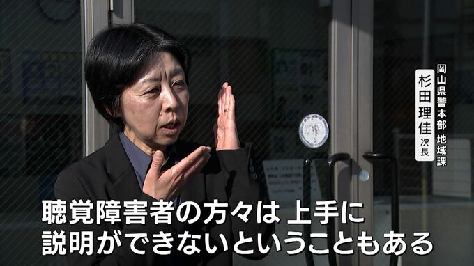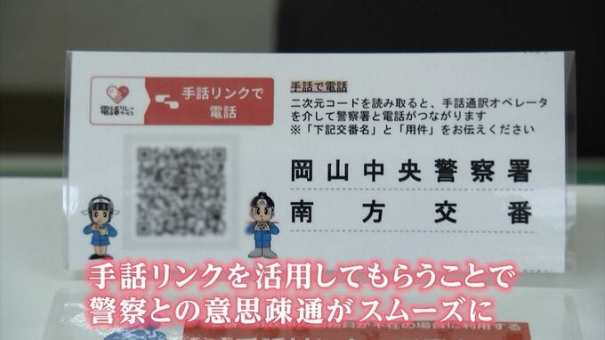 岡山県警は、スマートフォンのビデオ通話などを通じて、手話でコミュニケーションがとれる「手話リンク」の運用を始めました。聴覚障害者が交番を訪れた際、警察官がいなくても、この「手話リンク」で警察署の担当者と意思疎通ができるようにするのが目的です。