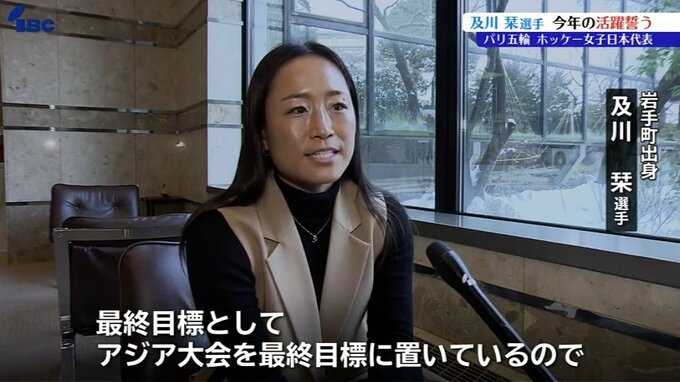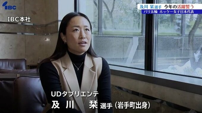 パリオリンピック・ホッケー女子日本代表としてプレーし、現在もスペインで活躍する岩手町出身の及川栞選手がIBCを訪れ、2026年の活躍を誓いました。